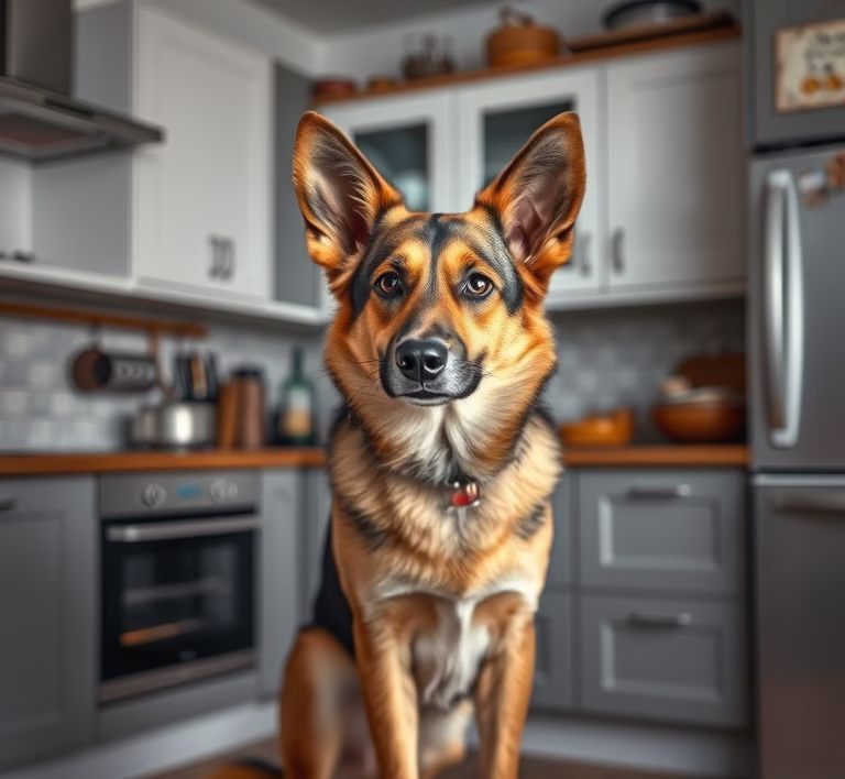 - Regelmäßige Überprüfung des Bodens: Nach dem Kochen oder Essen können kleine Lebensmittelstücke herunterfallen. Kontrollieren Sie den Boden, bevor Ihr Hund Zugang zum Bereich hat.